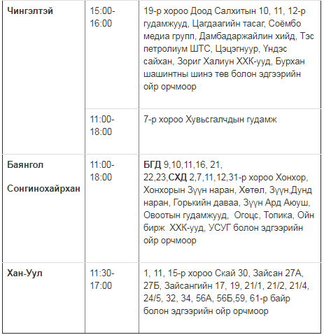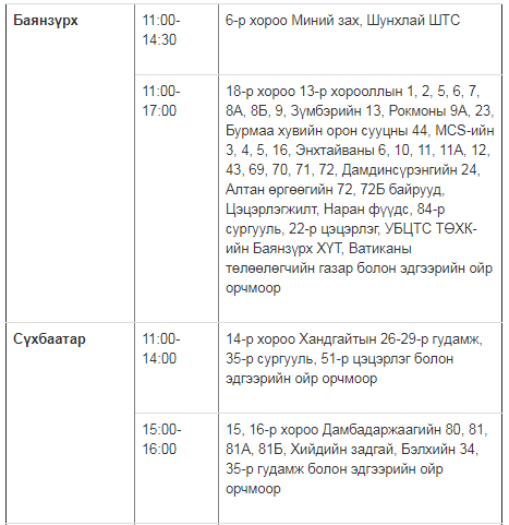 Өнөөдрийн цахилгаан хязгаарлах хуваарийг хүргэж байна.