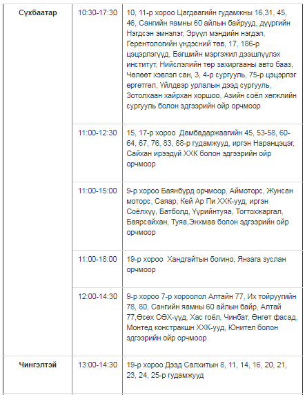 “Улаанбаатар цахилгаан түгээх сүлжээ” ТӨХК-аас шугам тоноглолд урсгал засварын ажил хийхтэй холбогдуулан хэрэглэгчдийг цахилгаан эрчим хүчийг түр хязгаарладаг билээ. Өнөөдөр дөрвөн дүүрэгт цахилгаан хязгаарлалт хийгдэнэ. Засварын ажлыг тухайн тоноглолыг хүчдэлээс бүрэн чөлөөлсний дараа хийдэг нөхцөл байдлыг харгалзан үзэж хэрэглээгээ түр зохицуулан, хүлээцтэй хандахыг хэрэглэгч Та бүхнээс хүсье.