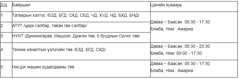 Иргэн та Тээврийн хэрэгслийн албан татвар, төлбөр хураах цэгүүдэд биечлэн очихоор бол: