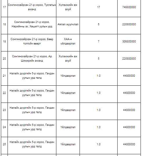 Та тухайн газрыг дуудлага худалдаагаар авснаар байршил бүр дээр хийгдсэн бэлэн зураг төслийн дагуу барилгын ажлаа эхлүүлж, нэмэлт цаг зав, хөрөнгө мөнгө зарцуулалгүй ажлаа эхлүүлэх боломжтой болдгоороо давуу талтай.