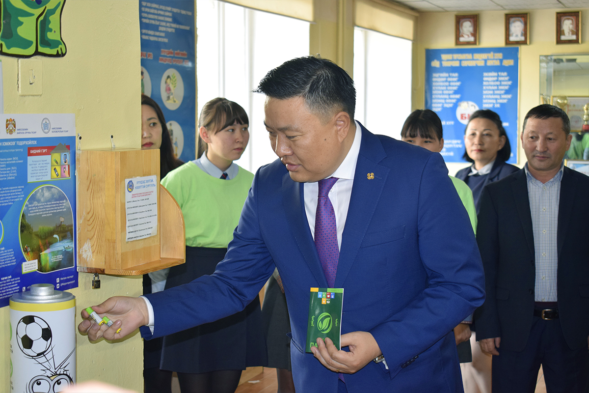 Тэргүүн байр болох нийслэлийн Баянгол дүүргийн 28-р сургууль дээр “Хаягдал зай хураагуур цуглуулах эхний хайрцаг”-ыг байршууллаа. Арга хэмжээнд БОАЖ-ын сайд Н.Цэрэнбат, Хүрээлэн буй орчин, байгалийн нөөцийн удирдлагын газрын дарга Г.Нямдаваа, Нийслэлийн Боловсролын газрын орлогч дарга, Цэнгэг усны нөөц, байгаль хамгаалах төийн удирдлагууд болон Монголын хог хаягдлыг дахин боловсруулах үндэсний холбооны ерөнхийлөгч Д.Бямбасүрэн нар оролцсон юм.
