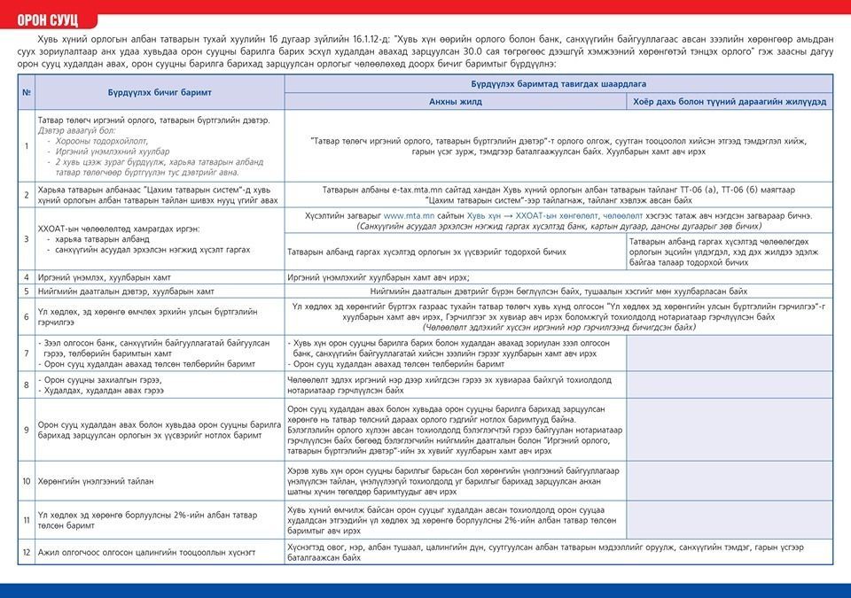 ОРОН СУУЦ ХУДАЛДАН АВСАН ИРГЭНИЙ БҮРДҮҮЛЭХ МАТЕРИАЛ