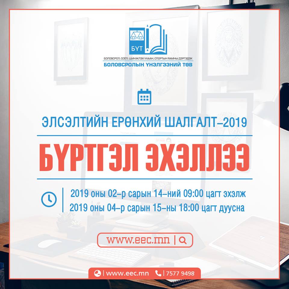 Элсэлтийн ерөнхий шалгалтад 2019 онд ерөнхий боловсролын сургууль төгсөгчдөөс гадна Монгол Улсын их дээд сургуулиудад элсэхийг хүссэн хүн бүхэн оролцох боломжтой юм байна.