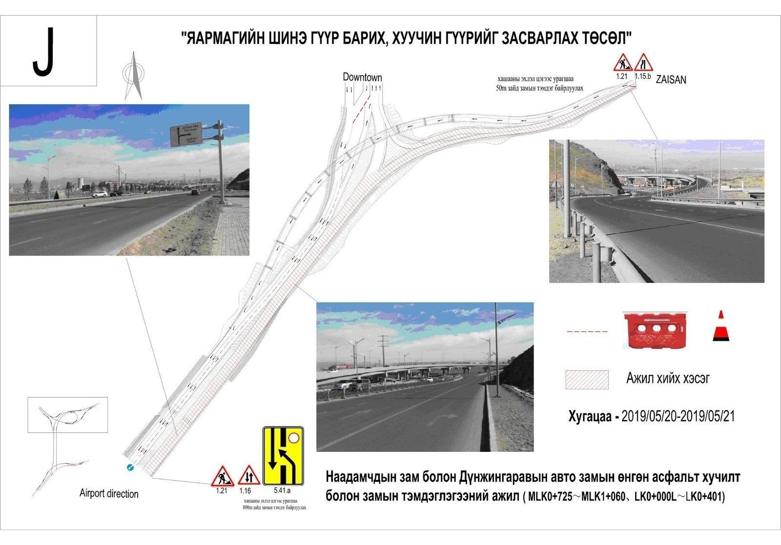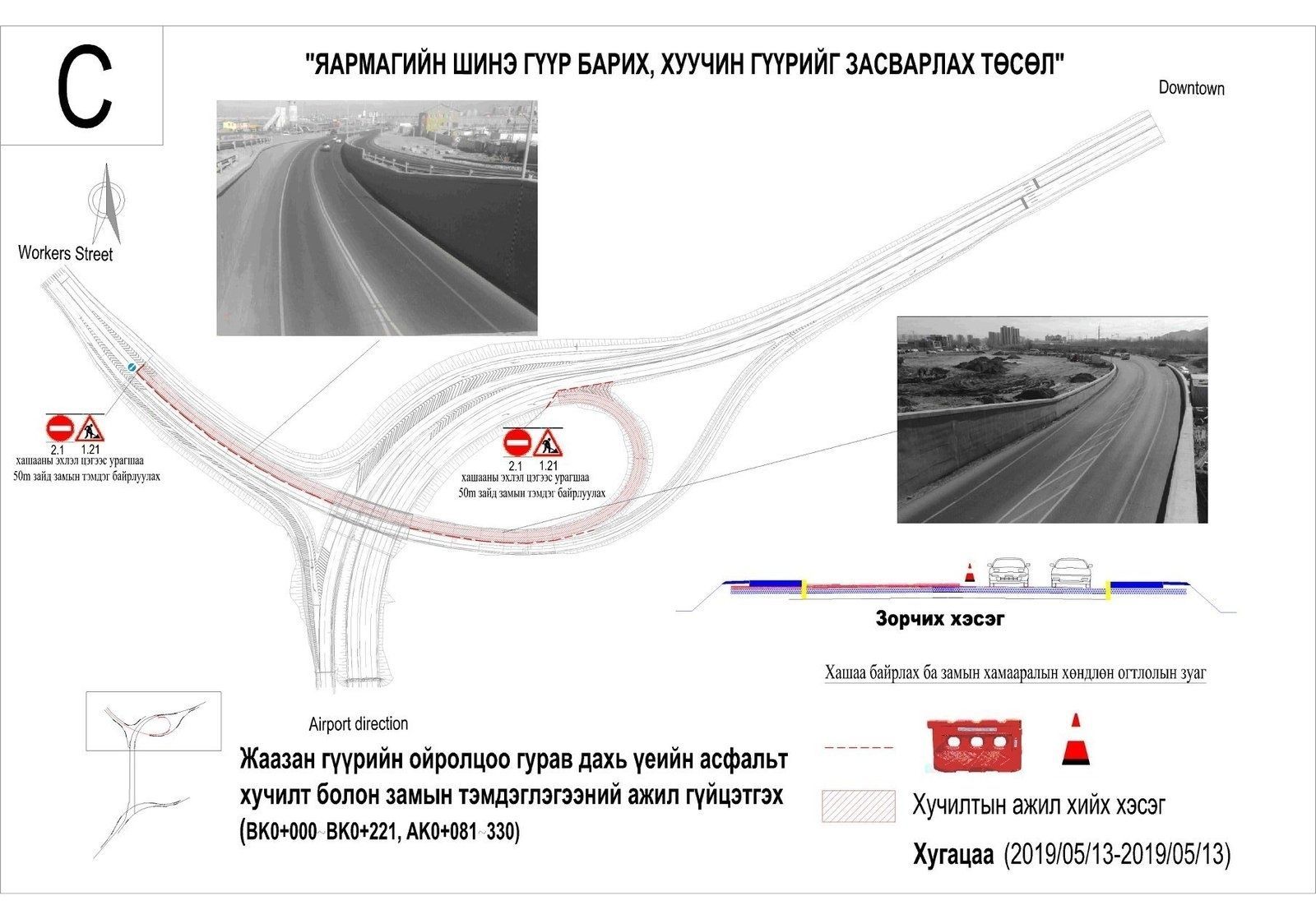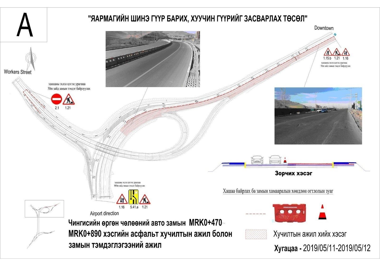 Харин авто замын өнгөн хучилтын ажлыг 5 дугаар сарын 11-ний өдрөөс эхлүүлнэ. Авто замын өнгөн хучилтын ажил 5 дугаар сарын 23-ны өдрийг хүртэл үргэлжилнэ. Иймд тус гүүрний чиглэлүүдийг хуваарийн дагуу хэсэгчлэн хаахаар болжээ. Замыг хэсэгчлэн хааснаар замын хөдөлгөөнд саад учрахгүй ч ачаалал нэмэгдэх тул тус чиглэлд зорчигчдод хэсэгчлэн хаах хуваарийг танилцуулж байна.