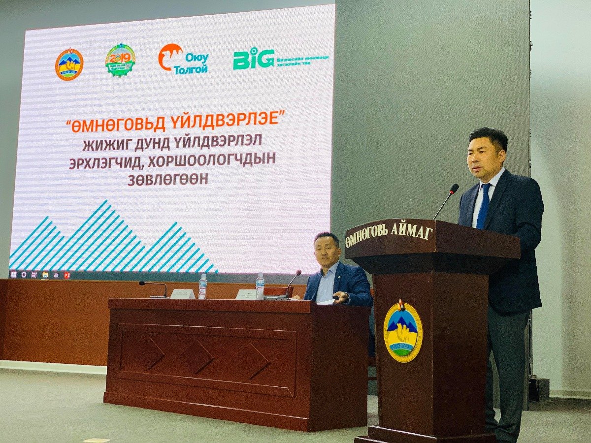 "Өмнөговьд үйлдвэрлэе" жижиг дунд бизнес эрхлэгч, хоршоологчдын зөвлөгөөний үеэр орон нутгийн жижиг дунд бизнес эрхлэгчдийг дэмжих зээл олгох талаар холбогдох байгууллага мэргэжилтэн мэдээлэл өгч хамрагдах боломжуудын талаар танилцуулав.