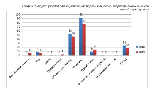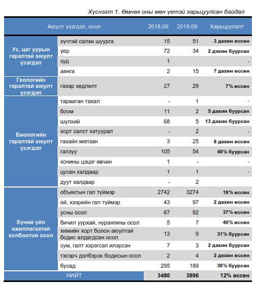 Өнгөрсөн оны мөн үетэй харьцуулахад гамшиг, аюулт үзэгдэл, ослоос аварсан хүний тоо 39 хувь, эд хөрөнгө 48 хувиар өссөн байна үзүүлэлттэй байна.