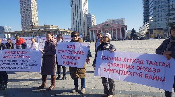 Баянзүрх дүүргийн 133 дугаар сургуульд дөрвөн ээлжээр хичээллэж, Үндсэн хуулиар олгогдсон эрхээ эдэлж чадахгүй байгаа тухай тус сургуулийн эцэг эхчүүдийн төлөөлөл өнөөдөр Сүхбаатарын талбай дээр цуглаан зохион байгууллаа.