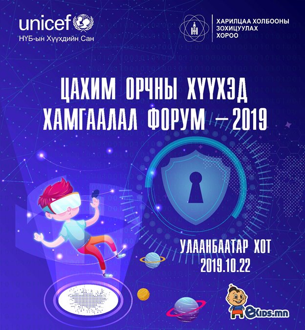 Харилцаа холбооны зохицуулах хороо болон НҮБ-ын Хүүхдийн сан хамтран “Цахим орчны хүүхэд хамгаалал” форумыг 2019 оны аравдугаар сарын 22-ны өдөр зохион байгуулах гэж байна.