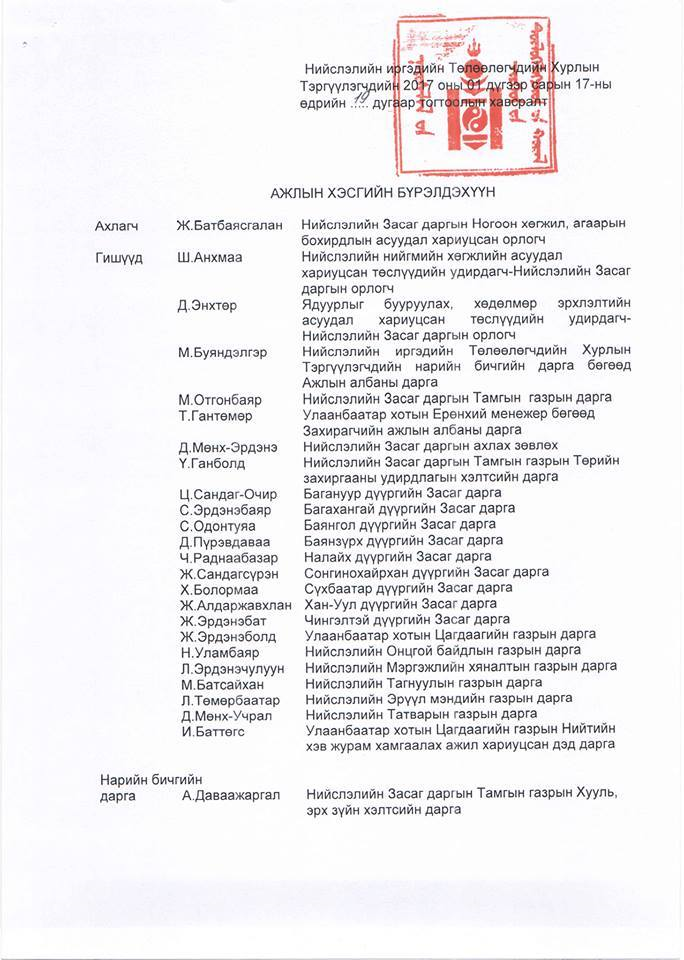 Ажлын хэсгийн ахлагч Ж.Батбаясгалан “Шуурхай ажлын хэсэг Нийслэлийн иргэдийн Төлөөлөгчдийн хурлын Тэргүүлэгчдэд танилцуулсны дагуу тодорхой шийдвэрүүд гаргалаа. Уг хэрэг мөрдөн байцаалтын шатанд явж байгаа учир хуулийн хүрээнд мэдээлэл хүргэж байна. Шүүх, шинжилгээний байгууллагаас эцэслэн дүгнэлт гараагүй байгаа. Харамсалтайгаар амь насаа алдсан хүмүүс хордлогын шинж тэмдэгтэй байгаа тул иргэдийнхээ эрүүл мэнд, амь насыг хамгаалах, урьдчилан сэргийлэхийн тулд ийм арга хэмжээг авч байна” хэмээв.