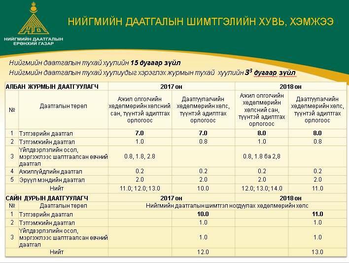 Нийгмийн даатгалын ерөнхий газраас нийгмийн даатгалын шимтгэлийн хувь, хэмжээ шинчлэгдэн гарсан журмыг хүргэж байна. Нийгмийн даатгалын тухай хулийн 15-р зүйл, нийгмийн даатгалын тухай хуулиудыг хэрэглэх журмын тухай хуулийн 3.3 -р зүйлийг тус тус тусгажээ.