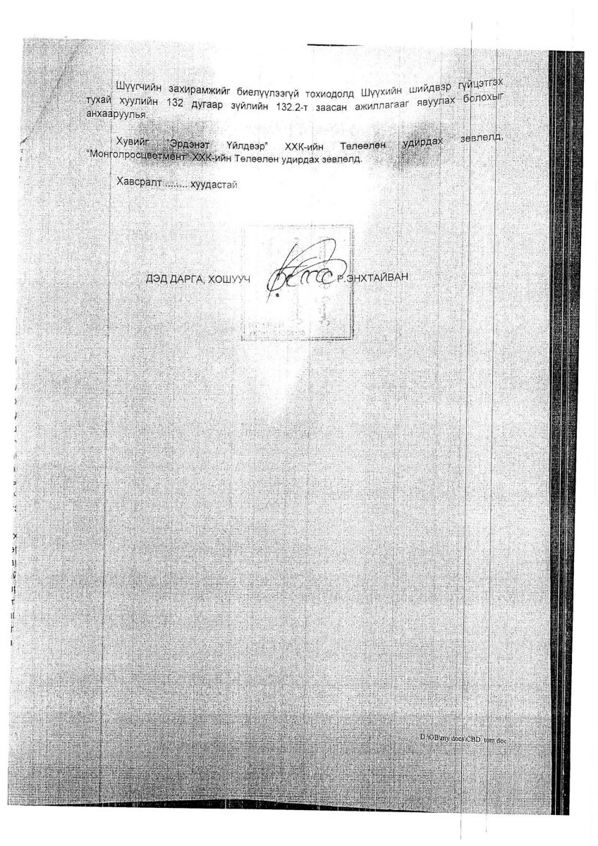 Иймд, шүүхийн хүчин төгөлдөр шийдвэрийг санаатай зөрчиж, хууль бус ТУЗ-ийн хурал зохион байгуулсан нэр бүхий албан тушаалтнууд, ТУЗ-ийн дарга, гишүүдийг хуулийн байгууллагаар шалгуулах болохыг мэдэгдье.
