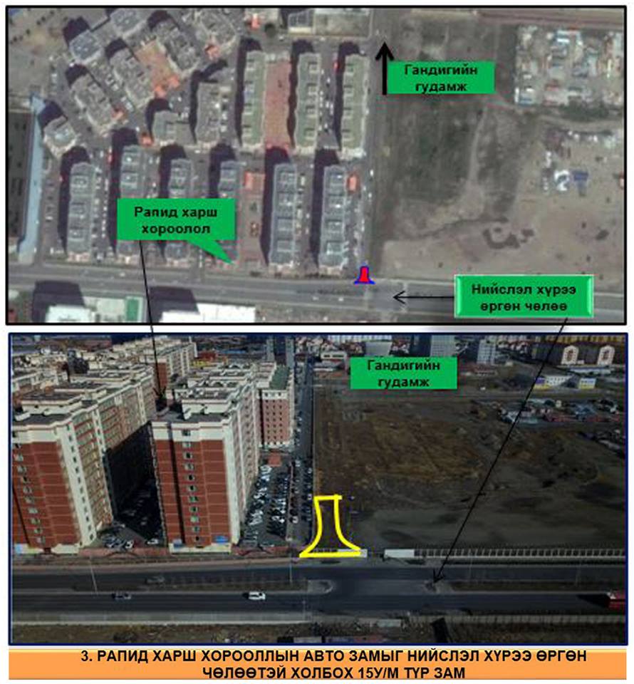 3. Рапид харш хорооллын авто замыг нийслэл хүрээ өргөн чөлөөтэй холбох 15у/м түр зам