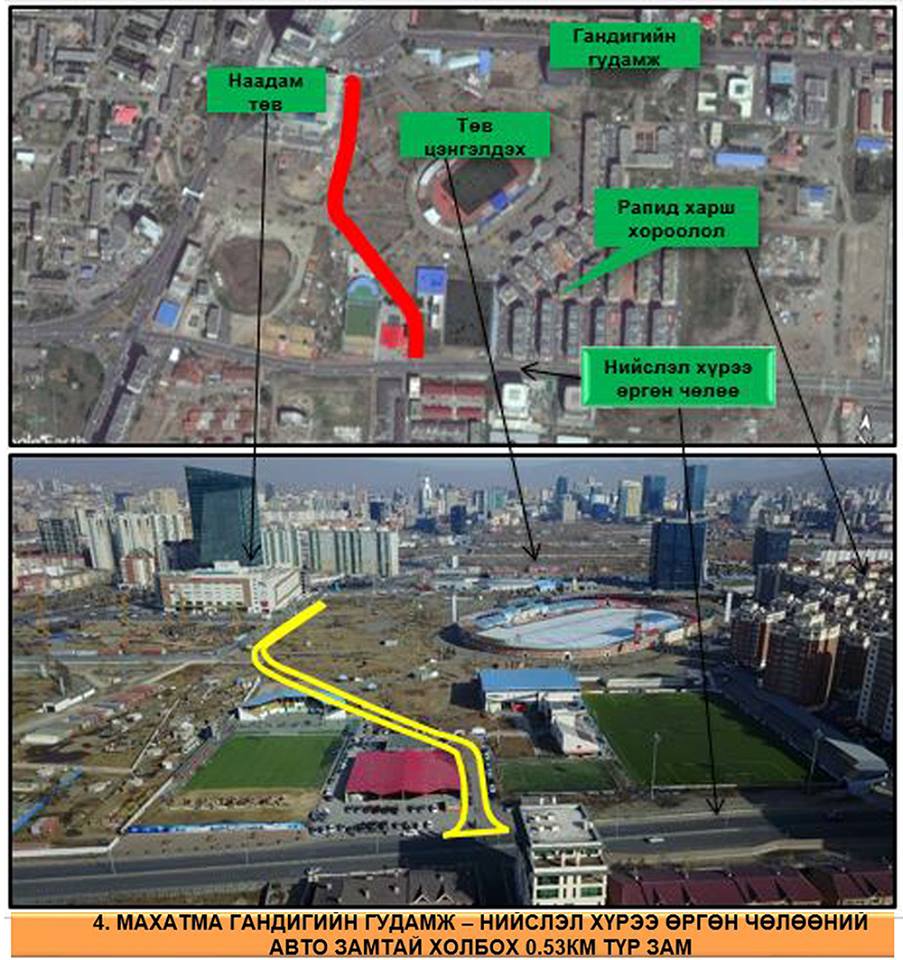 4. Махатма Гандигийн гудамж–нийслэл хүрээ өргөн чөлөөний авто замтай холбох 0.53км түр зам
