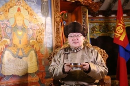 Цааш уншихЁслолын үеэр Төрийн ордны хойд голын Соёмбот хаалганд Төрийн далбаа мандуулан хүндэт харуул жагсч, үлээвэр найрал хөгжимд Төрийн дуулал, хүндэтгэлийн марш эгшиглүүлэв.